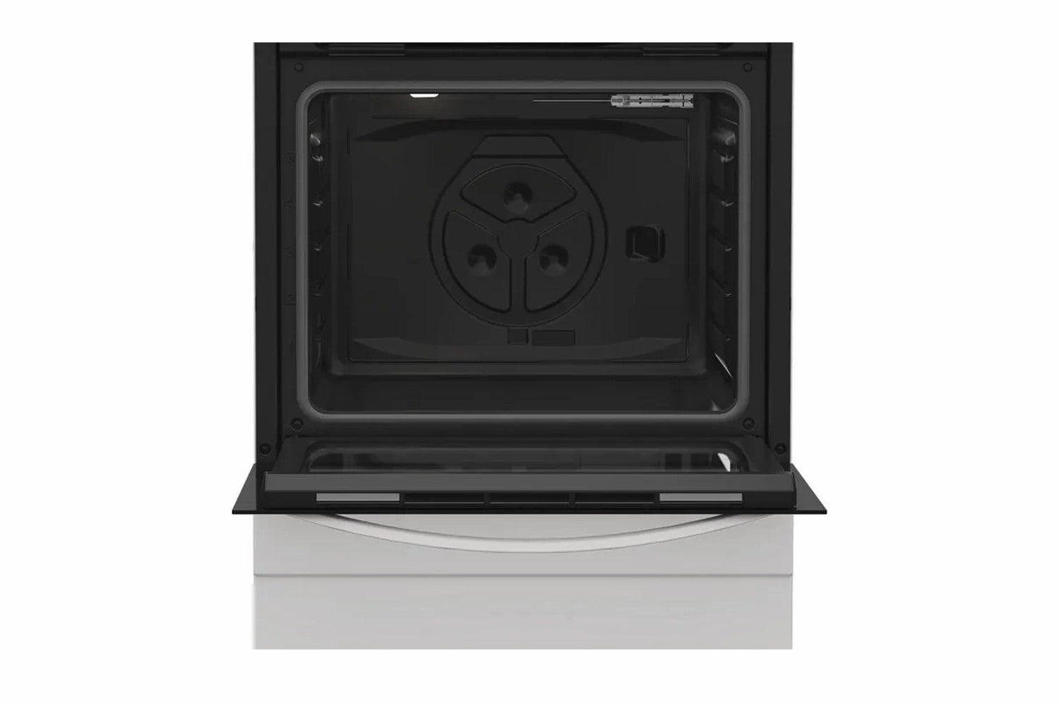 Enjoy making delicious dishes for the whole family with this Indesit freestanding cooker. Finished in classic white, it brings a stylish yet timeless touch to your kitchen. This 60cm cooker has a large oven, giving you plenty of space to cook all kinds of meals. Plus, the oven light lets you check on your food without opening the door. The 4 burner gas hob lights up instantly at the press of a button with Auto Ignition, and the sturdy enamel supports keep your pans stable for hassle-free cooking. With an impressive A energy rating, this cooker is as efficient as it is easy to use - perfect for everyday meals.