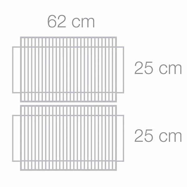 The height-adjustable grid has four different positions, and it is therefore easy to regulate the heat by raising and lowering the grid. Vertical barbecuing is also an option, where you place charcoal between the two grids – and barbecue using a spit and motor.