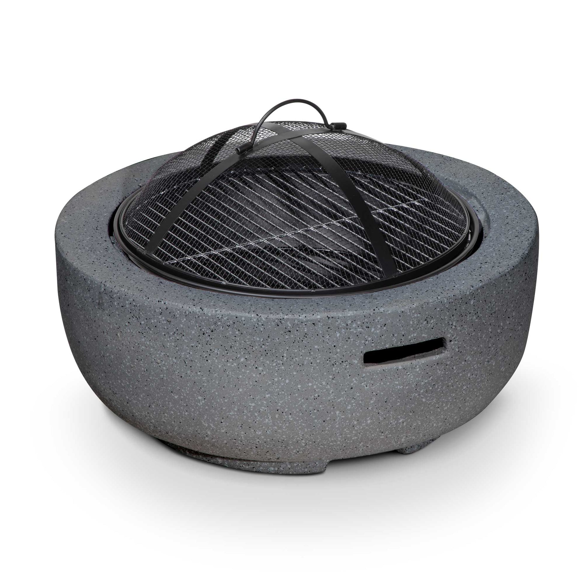 Round MgO Fire Pit with BBQ Grill, Ø60cm, Safety Mesh Screen - Dark Grey - DG189