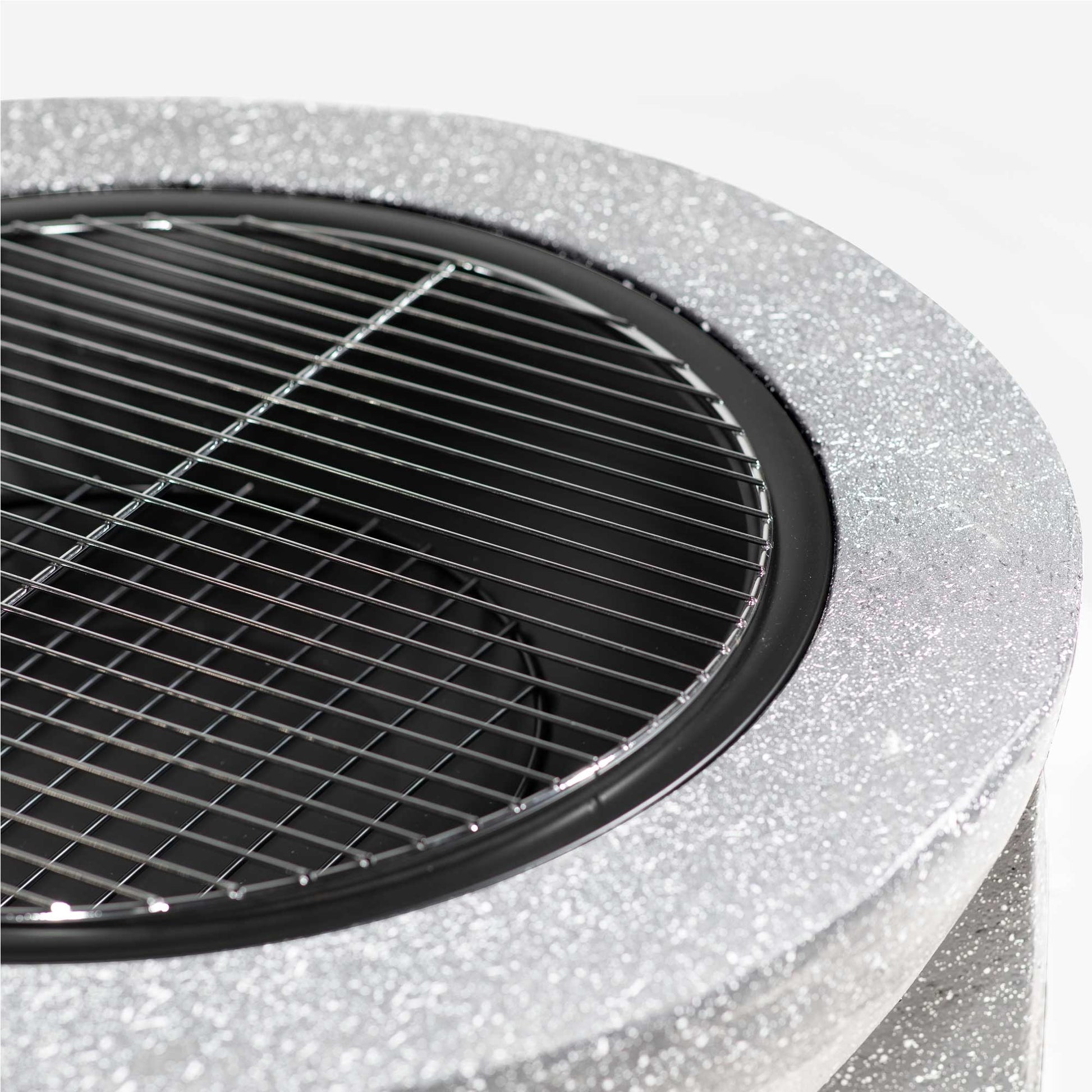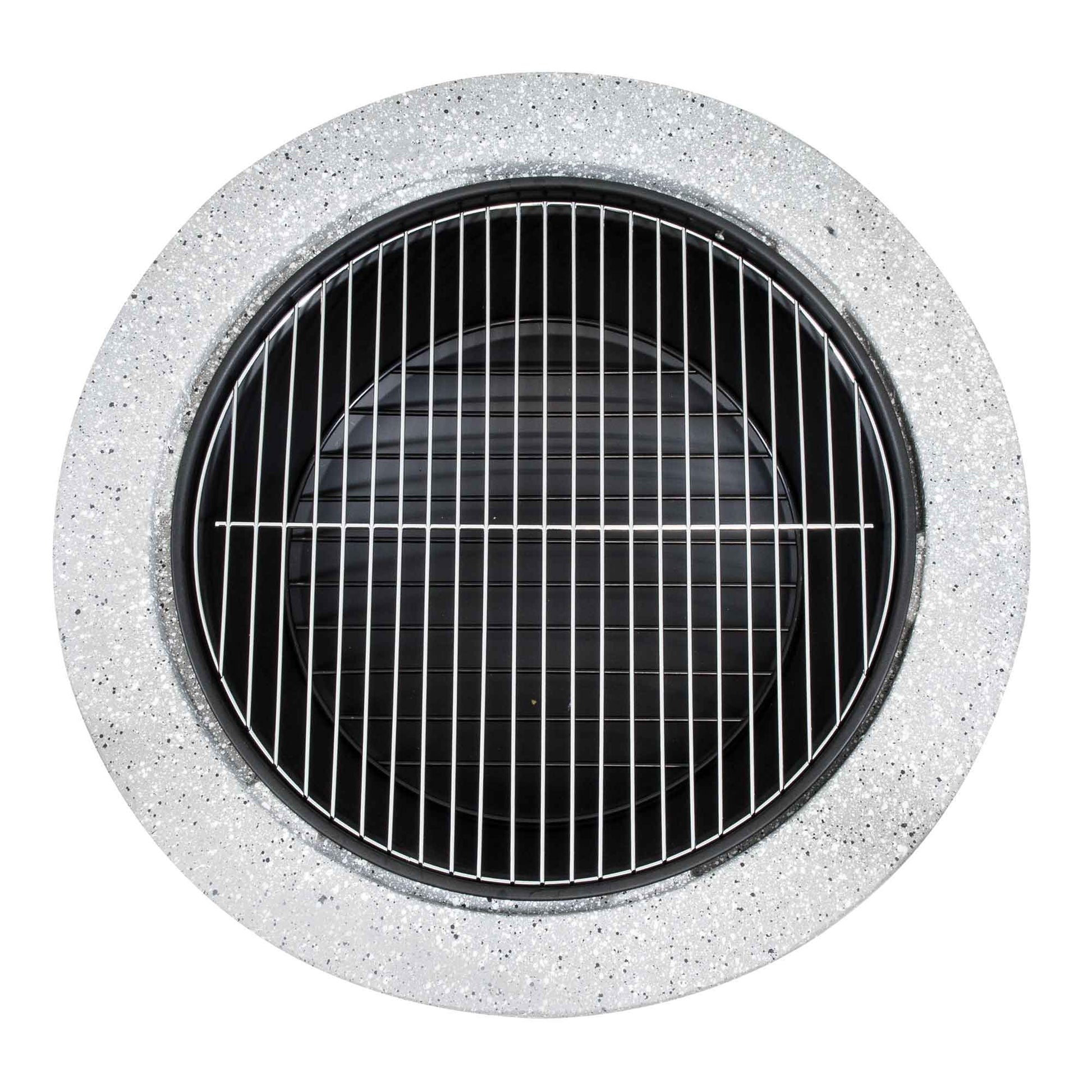 Round MgO Fire Pit with BBQ Grill, Ø75cm, Safety Mesh Screen, Light Grey - DG190
