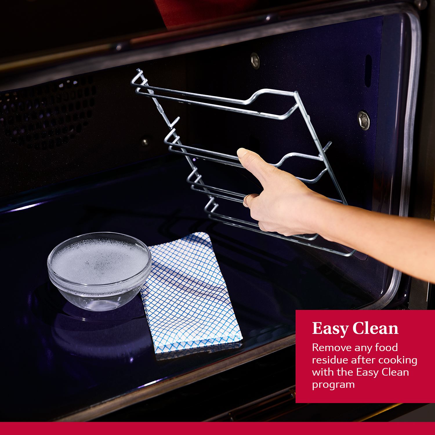 Roasting chicken no longer means a big cleaning job. Eco Clean makes cleaning easier than ever. The ecolytic coating traps grease generated during baking and roasting, and breaks it with each cooking cycle. When the oven reaches high temperatures, the rear wall cleans itself. Then Easy Clean steps in to take care of the base and side walls of the oven interior.
