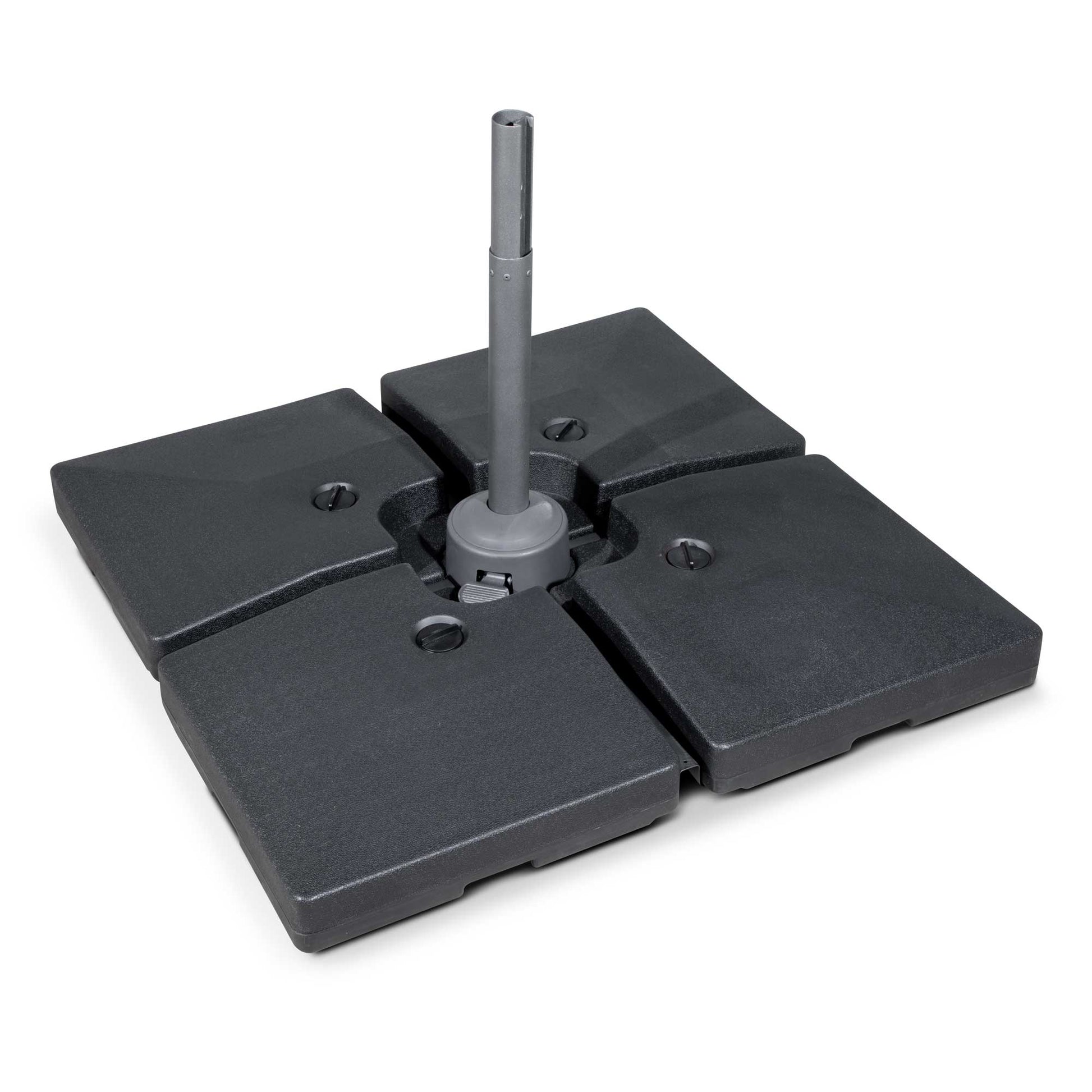 - Everything you Need - Supplied with 4 x quadrant bases which are fillable with either water or sand up to 92L and a cover to protect the parasol canopy when not in use.