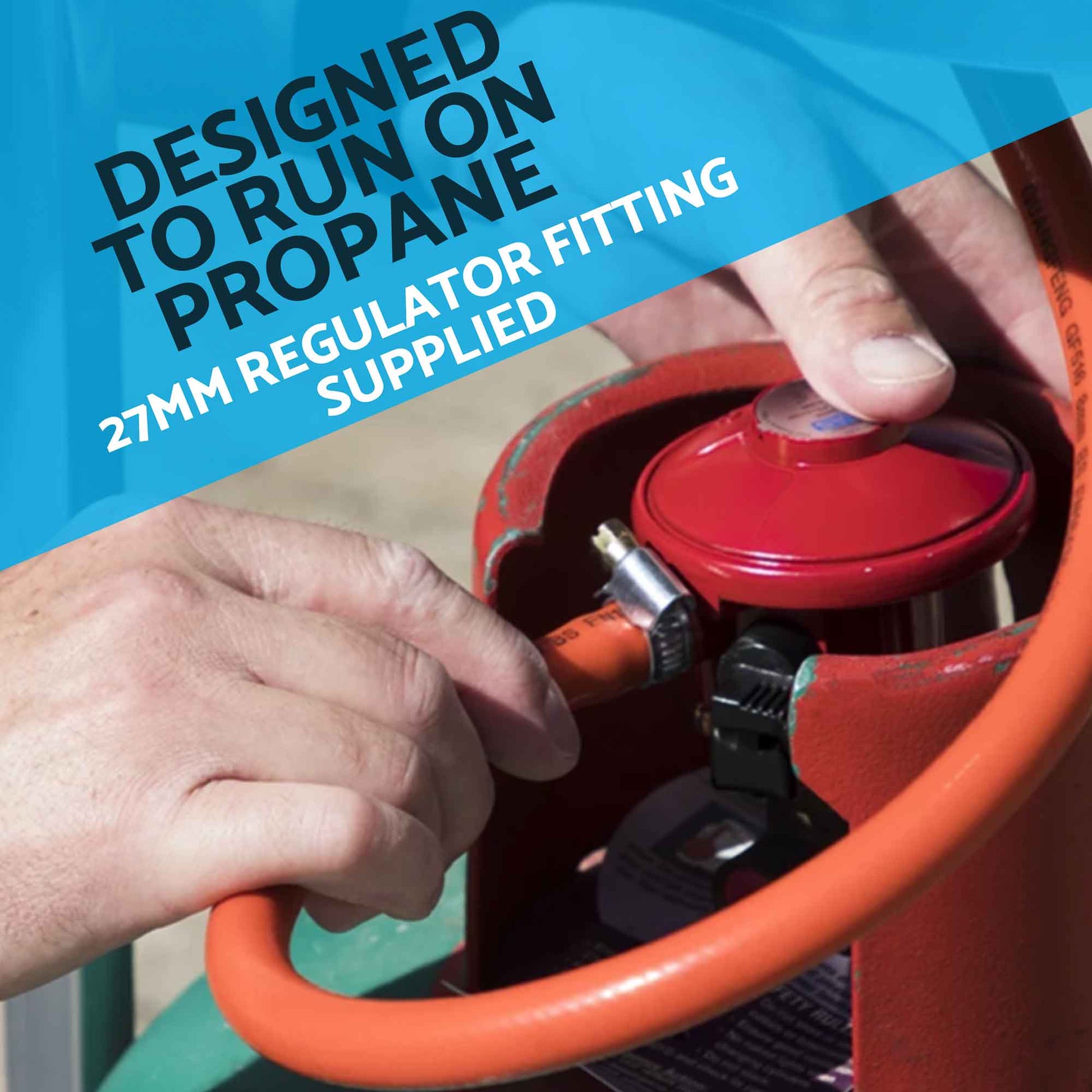 - Adjustable Heat - Variable temperature output controls and a fully enclosed propane gas cylinder chamber with safety tip over switch.