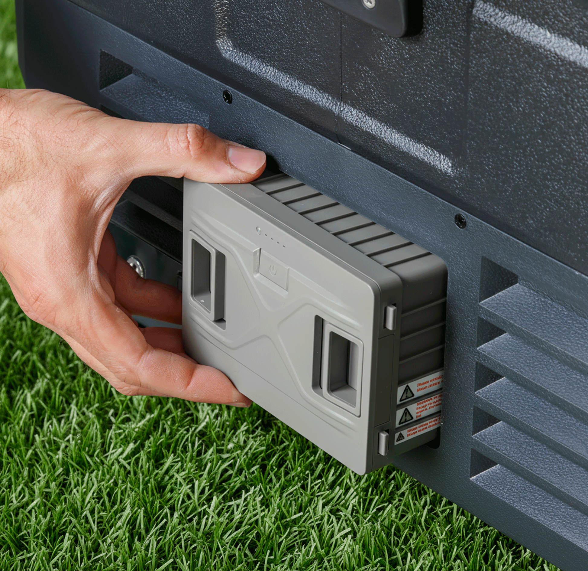 - RECHARGE ANYWHERE - Battery can recharge from mains, car charger or via solar panel (not included) when battery inserted into fridge.