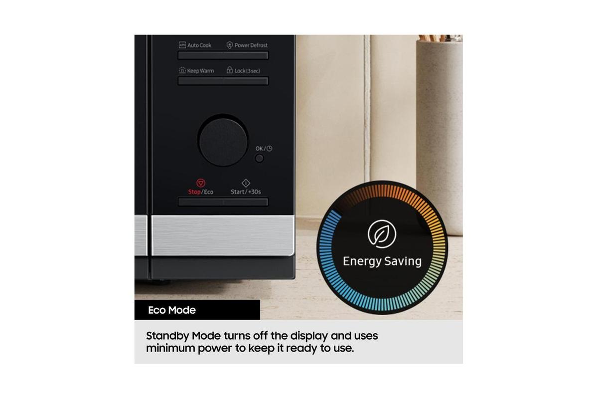 Even at rest, similar microwave ovens use power to maintain essential functions. Selecting the ECO Mode setting on the new Samsung Smart Oven significantly reduces power usage, delivering savings to your household on monthly energy bills.