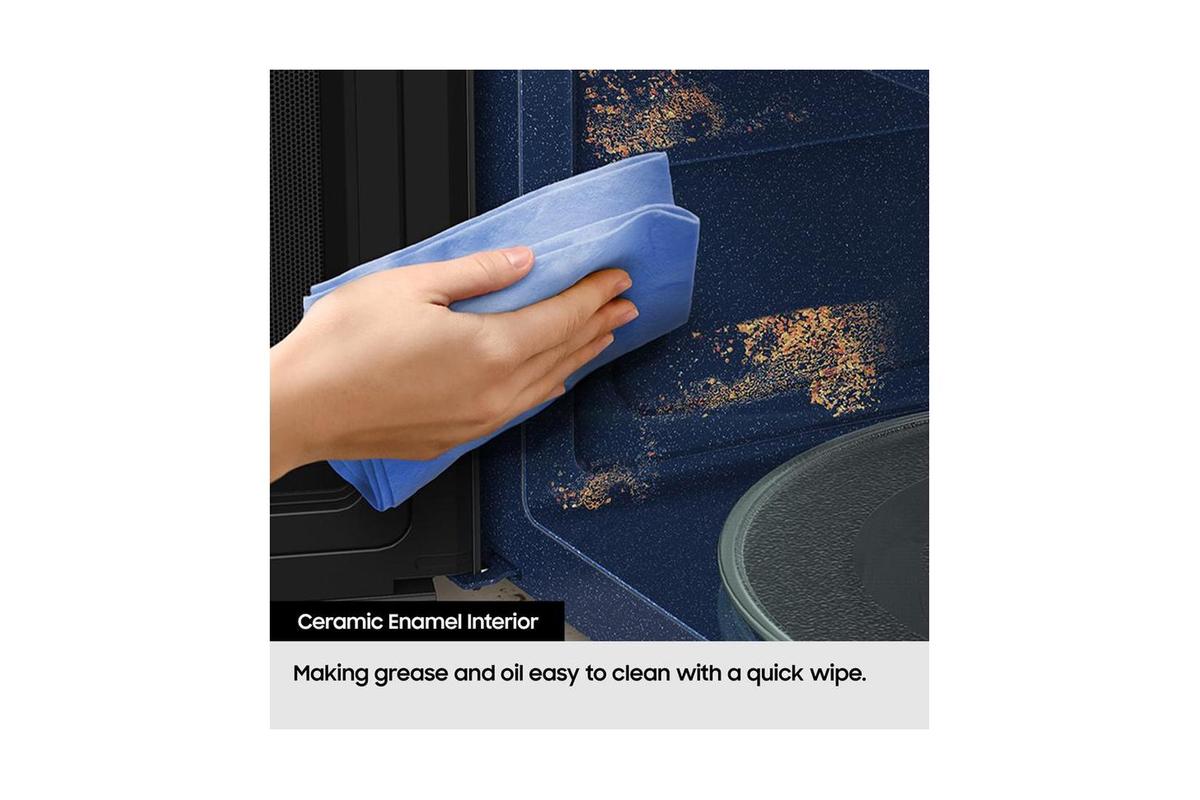 No more scrubbing or scratched surfaces. With a ceramic interior, the Samsung Smart Oven offers a smooth surface that is easy to clean and won't discolour over time from oil or grease residue. Compared to stainless steel and epoxy interiors, this smart oven's cavity is anti-bacterial and scratch-resistant, providing long-term superior quality.