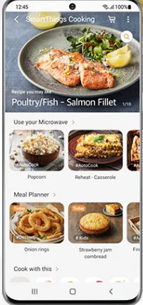 Enjoy culinary inspiration with SmartThings Cooking*. It understands your cooking needs, like dietary preferences. It then recommends personalized and trending recipes**. Or you can choose from themed recipe collections. And it also generates a weekly meal plan with recipes to make every day.