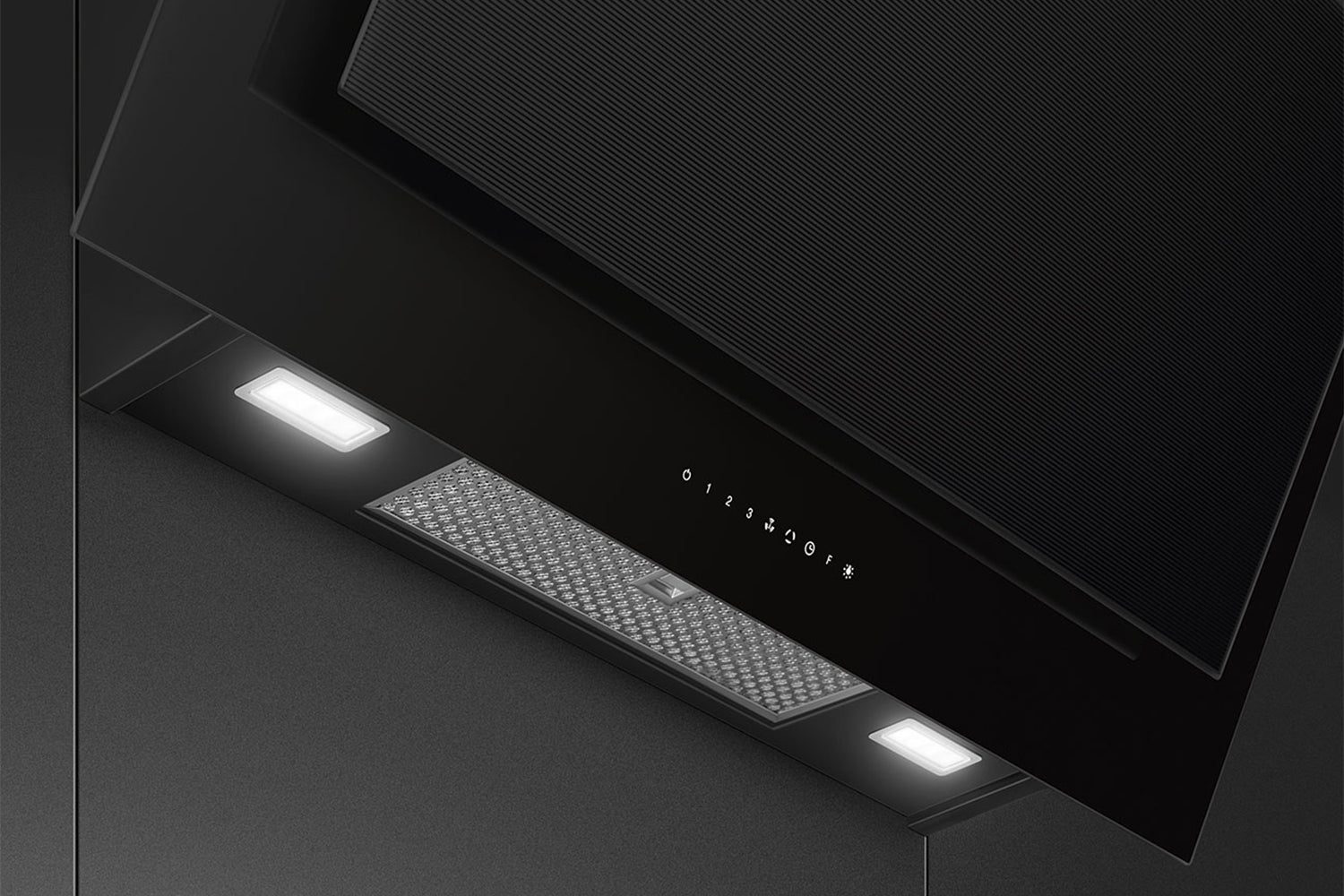 A special setting switches off both the Extraction and the lights, after a predefined Time, during which the hood keeps on Purifying the air until it turns off Automatically.