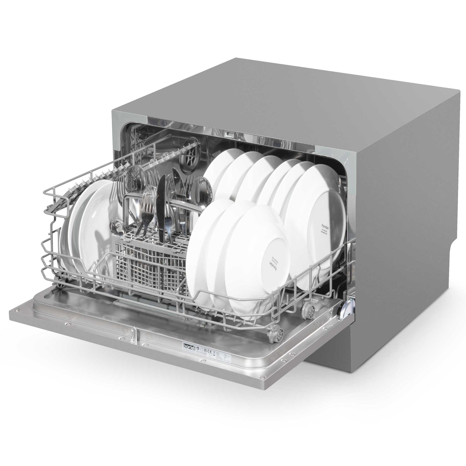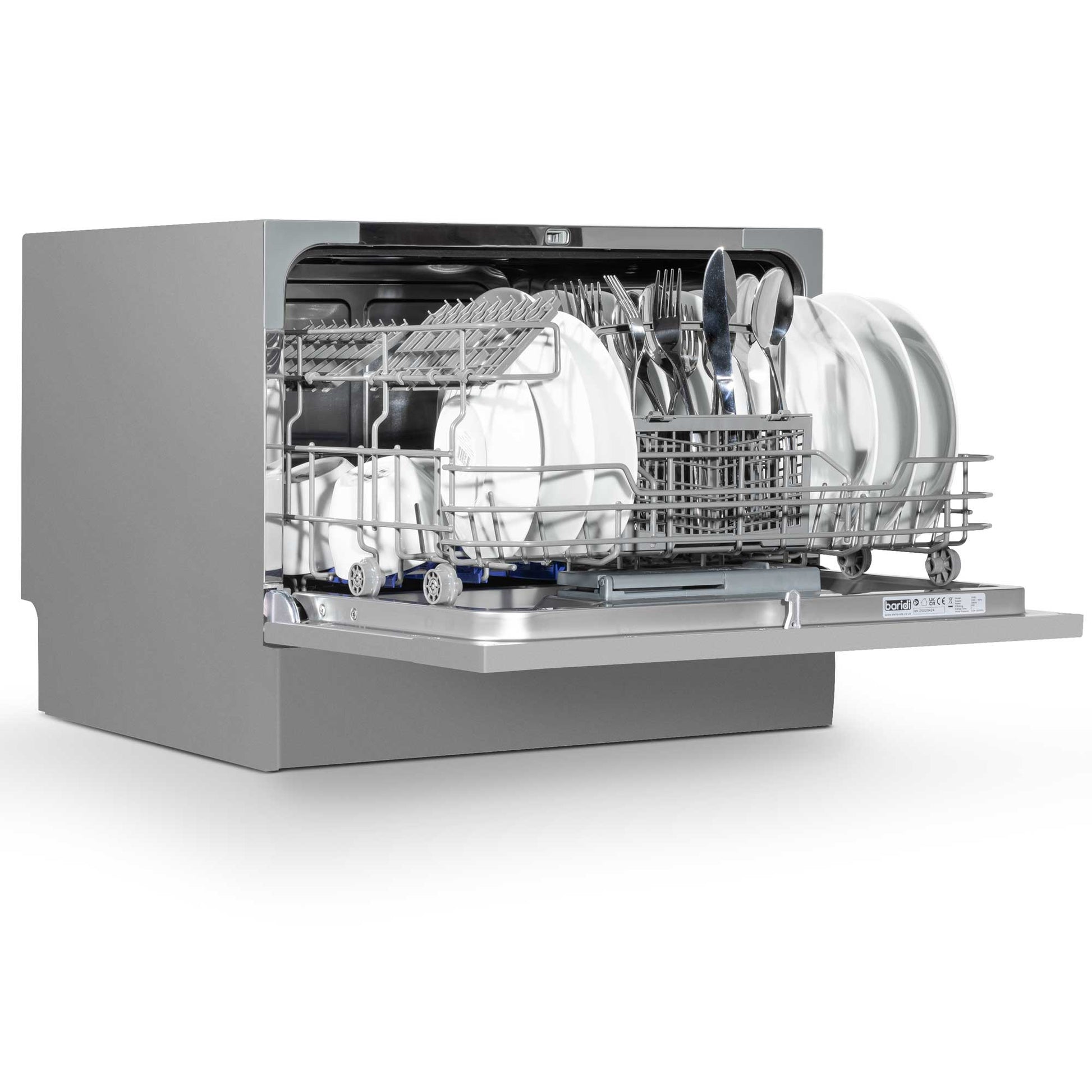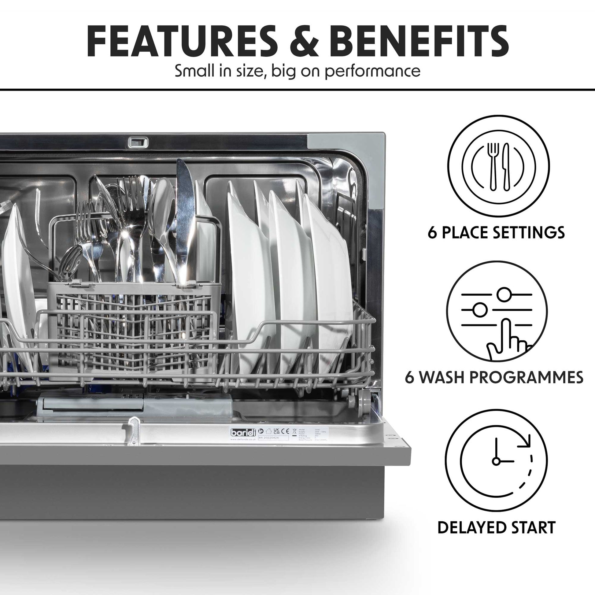 Baridi Compact Tabletop Dishwasher 6 Place Settings, 6 Programmes, Low Noise, 6.5L - Silver - DH84