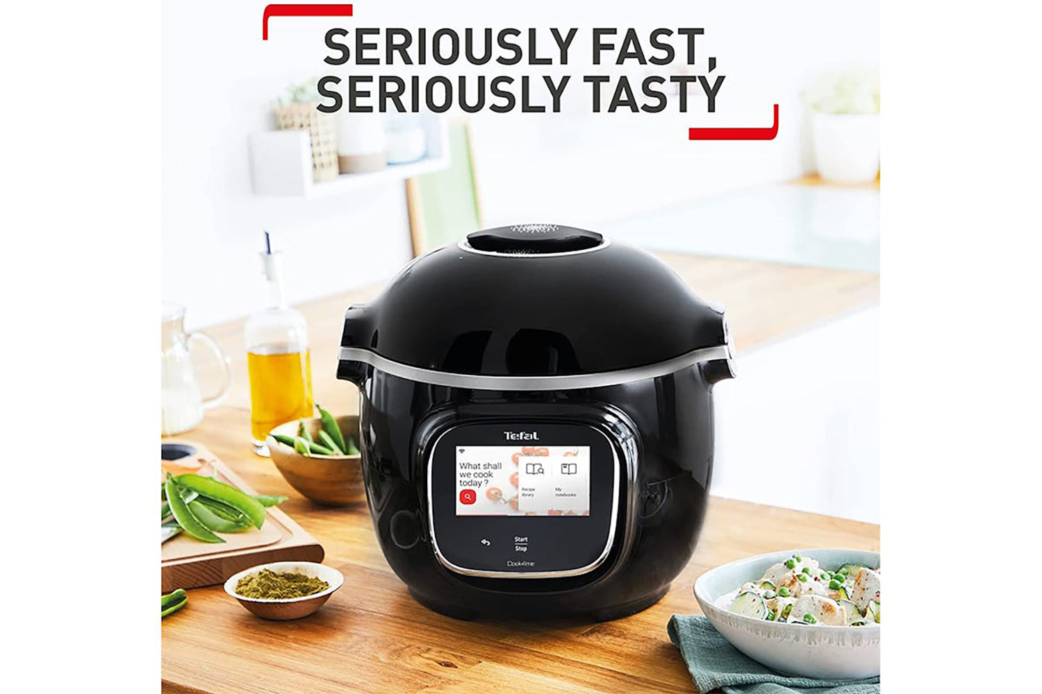 Cook4me Touch is a connected revolution for your kitchen. With visual cooking guides and advanced connectivity you’ll be in touch with your inner chef in no time. It walks you through the 400+* specially created, pressure cooking recipes, for endlessly delicious, healthy dinners including meals cooked in 10 mins or less Use the large, tiltable, waterproof screen to choose a recipe, Cook4me adjusts quantities, time and temp for perfect results, effortlessly. It gives you all the step-by-step guidance needed right there on screen. If you like to go solo and use manual settings, that’s easy too. Even clean-up is easy, the 6L, six portion bowl is non-stick and totally dishwasher safe. Plus, the ‘In My Fridge’ and ‘Shopping List’ features make meal planning a doddle. Connect your device to wifi and to your smartphone using the app. You can get new and seasonal recipes, make recipe libraries, favourites and shopping lists, monitor the progress of your cooking from out of the room, or even suggest recipes to someone while you’re out of your home. The Cook4me Touch takes pressure-cooking further than ever with plenty of other clever touches too. Like auto-release to save hands from hot steam, cool-touch handles, a hinged lid to avoid worktop drips. *requires connection to app **150 recipes, without preparation time.