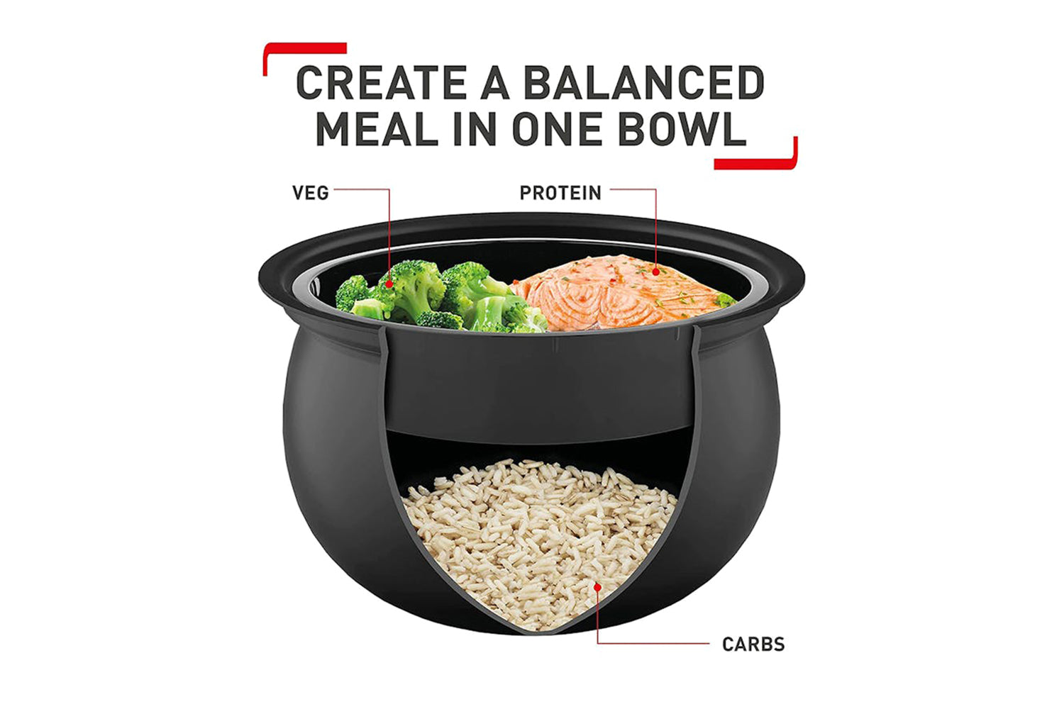 Get creative with your meals and achieve delicious results every time with SpheriCook by Tefal. This clever multicooker combines an innovative spherical bowl for 360° heat circulation with intelligent sensor technology that automatically adjusts the cooking time and temperature for you. No matter what you’re cooking, it will turn out beautifully. And this versatile appliance makes it incredibly easy to cook almost anything – from hearty soups and stews, to fluffy rice and even desserts. 16 cooking menus take the guesswork out of cooking; you can slow cook, stew, brown, steam, roast and more! Plus, each menu offers a choice of recipes, giving you 37 cooking functions in total. So, whether it’s a chunky soup or a broth, brown rice or white, or custard instead of cheesecake, SpheriCook will adapt the cooking time and temperature for flawless results. Food made but you’re not ready to eat? There’s a ‘Keep Warm’ mode for that. You can also reheat food and delay the cooking start time to suit your schedule. Or choose ‘My Recipe’ to experiment with your own creations. With a 5L capacity, SpheriCook is great for feeding the whole family or batch cooking. The intuitive LED control panel, dishwasher-safe parts and compact design make this multicooker easy to use, clean and store. It also comes with a handy measuring cup, rice spatula and soup spoon for precise portions, a basket for steaming, plus recipe book for mealtime inspiration.