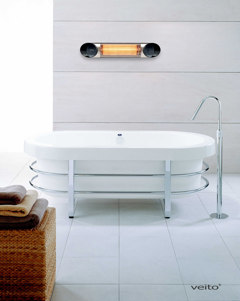 Veito Blade Mini Waterproof IP55 Wall and Ceiling Mounted Indoor and Outdoor Patio Heater, is ideal for places such as homes, conservatories, patios, bathrooms, restaurants, gardens, bistros, cafes, offices, factories, and gyms.